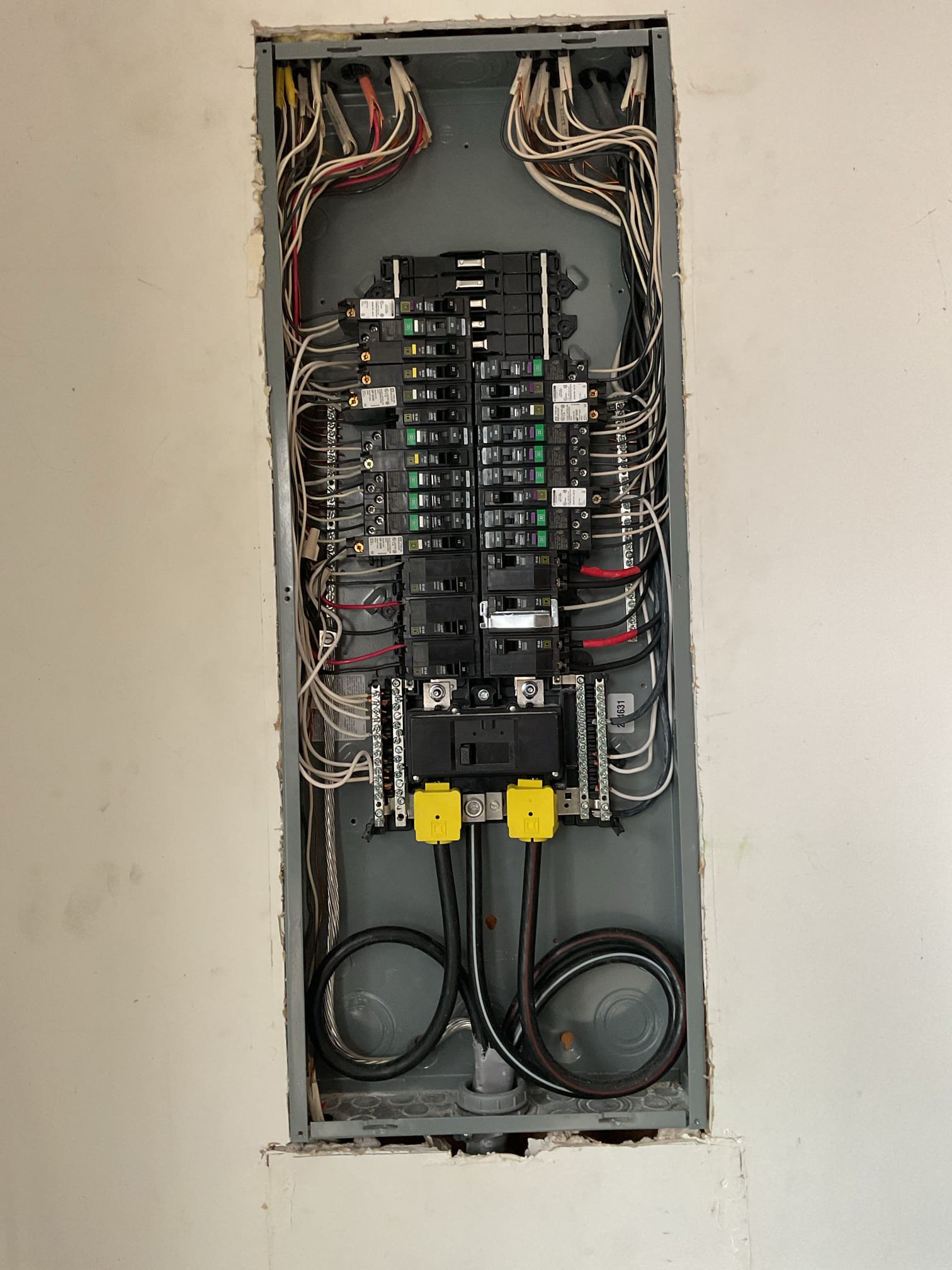 Larger, modern electrical panel with new breakers