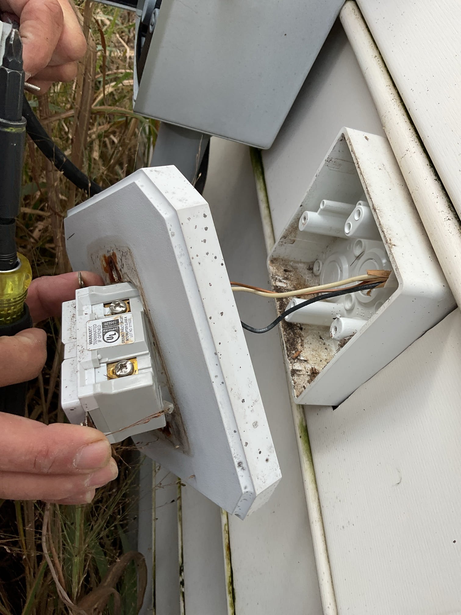 Our inspection revealed that the circuit was in good condition overall, but we discovered minor contact between neutral and ground wires, along with moisture inside an exterior outlet box connected to the same circuit. We recommended replacing the outdoor in-use cover and gasket to help eliminate moisture intrusion.